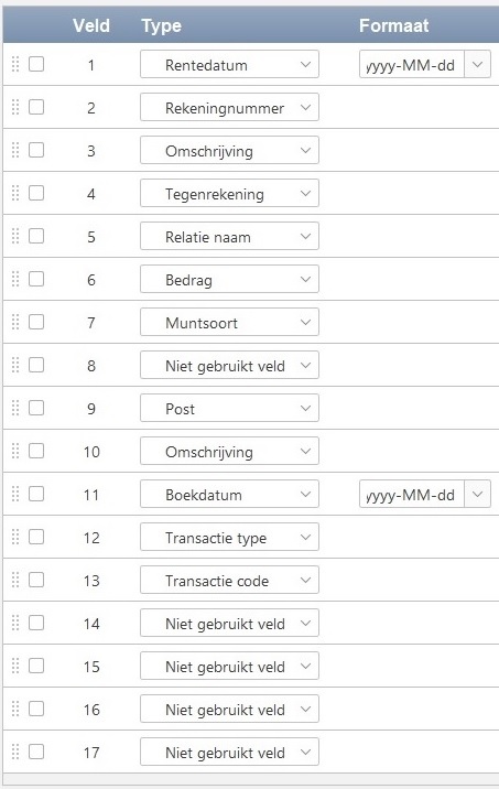 Noot 1: De velden Rentedatum en Boekdatum zijn van het formaat yyyy-MM-dd.